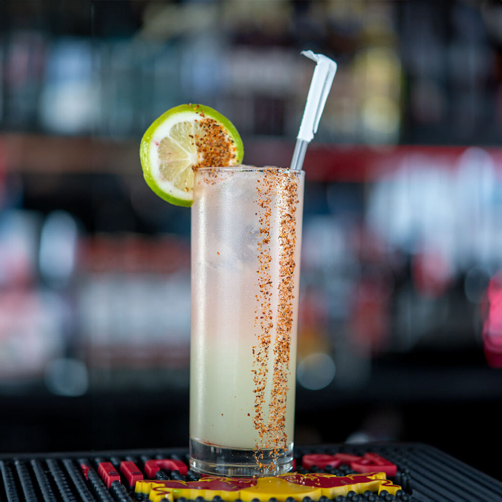 «Escarchada con sal y tajín, charro, licor de naranja, solución cítrica y refrescante jugo de toronja»